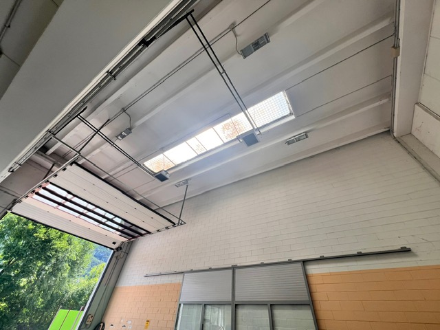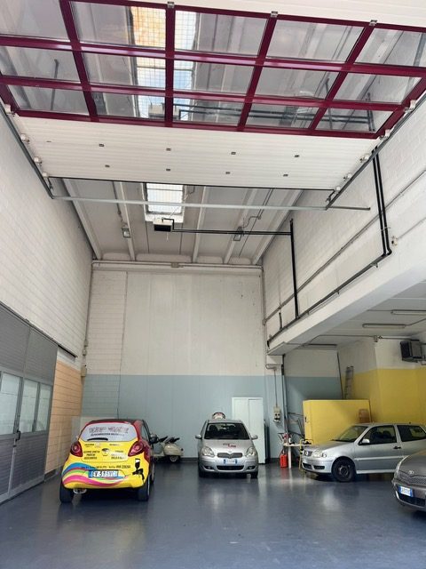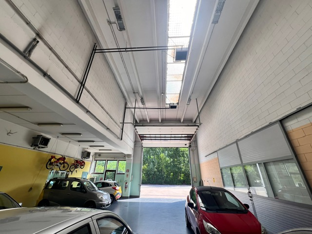 Al piano terra il capannone è stato, momentaneamente, diviso in due zone: da un lato troviamo un ampio vano con altezza tecnica utile (5.62 mt) all’ingresso di camion, furgoni e bilici ed al pari dal lato opposto un ulteriore vano con il suo ingresso indipendente di pari altezza . Nulla vieta che si possano unire le due parti in modo da creare un unico vano. Le porte sono entrambe con fotocellula ed automatizzate.