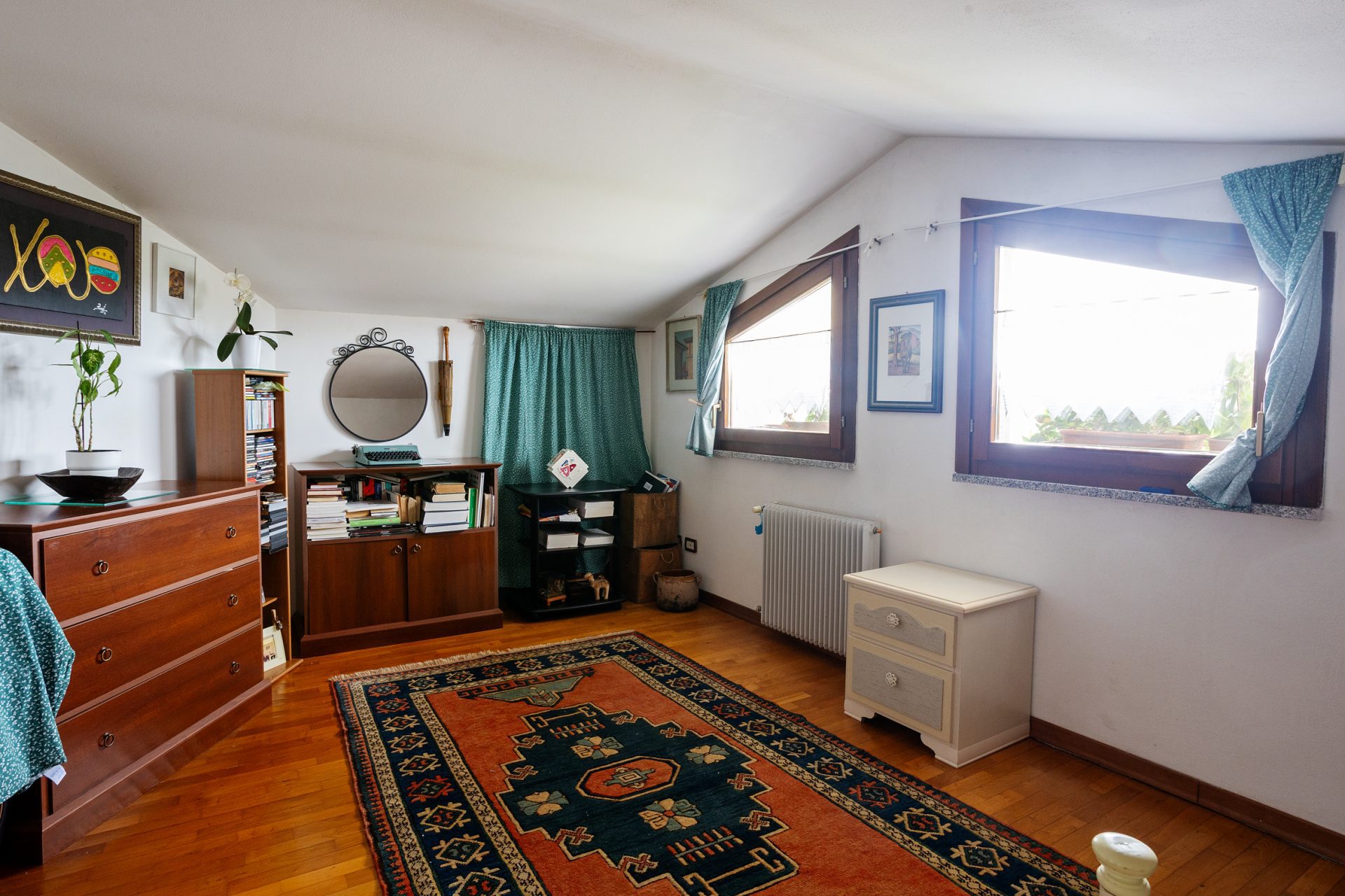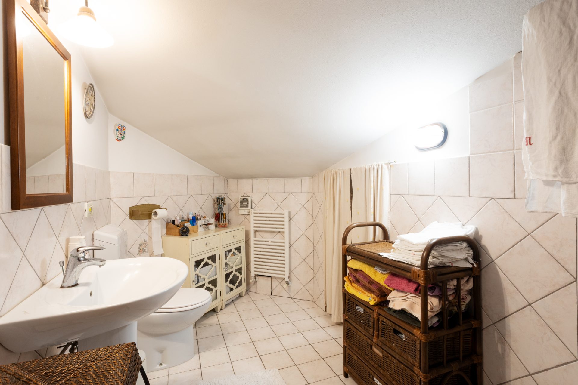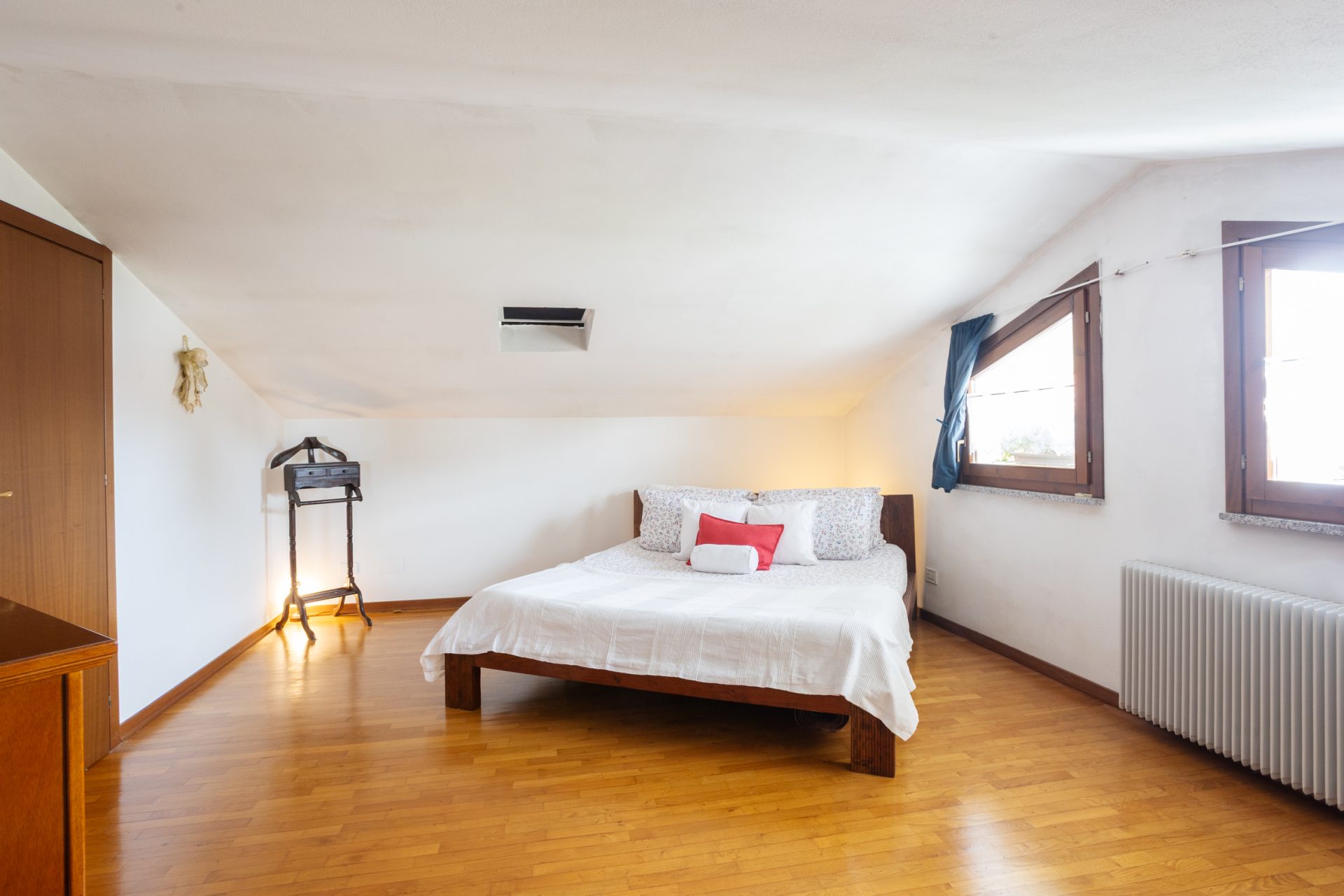 Al primo piano troviamo il vano soffitta leggermente mansardato, con ampio lucernaio e finestre: il vano risulta completamente arredato e diviso composto da due camere matrimoniali ed un bagno.