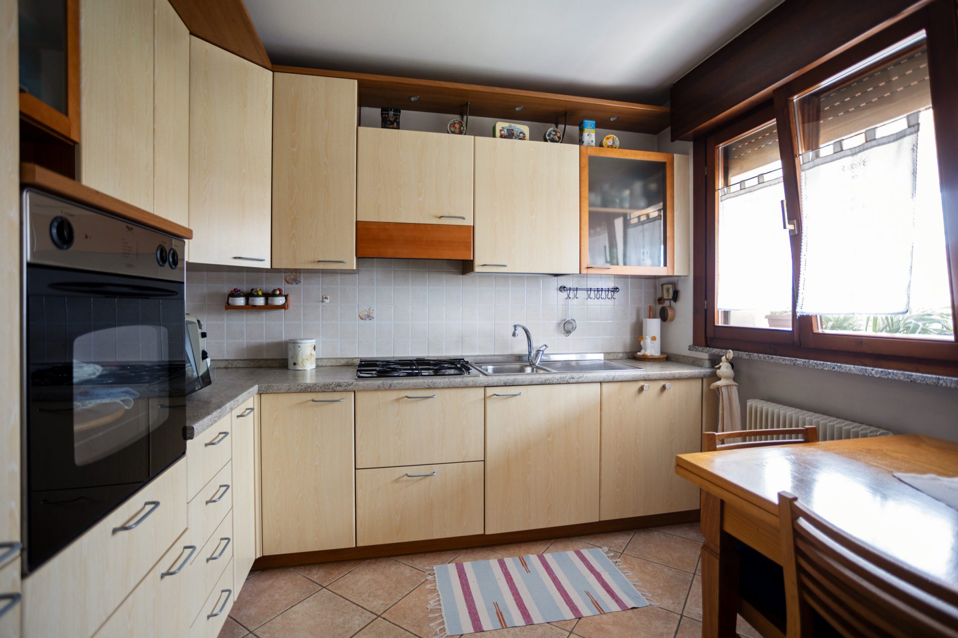 L’appartamento ha un suo ingresso indipendente tramite una scala esterna dalla quale si accede all’ampio terrazzo con tenda automatizzata con telecomando