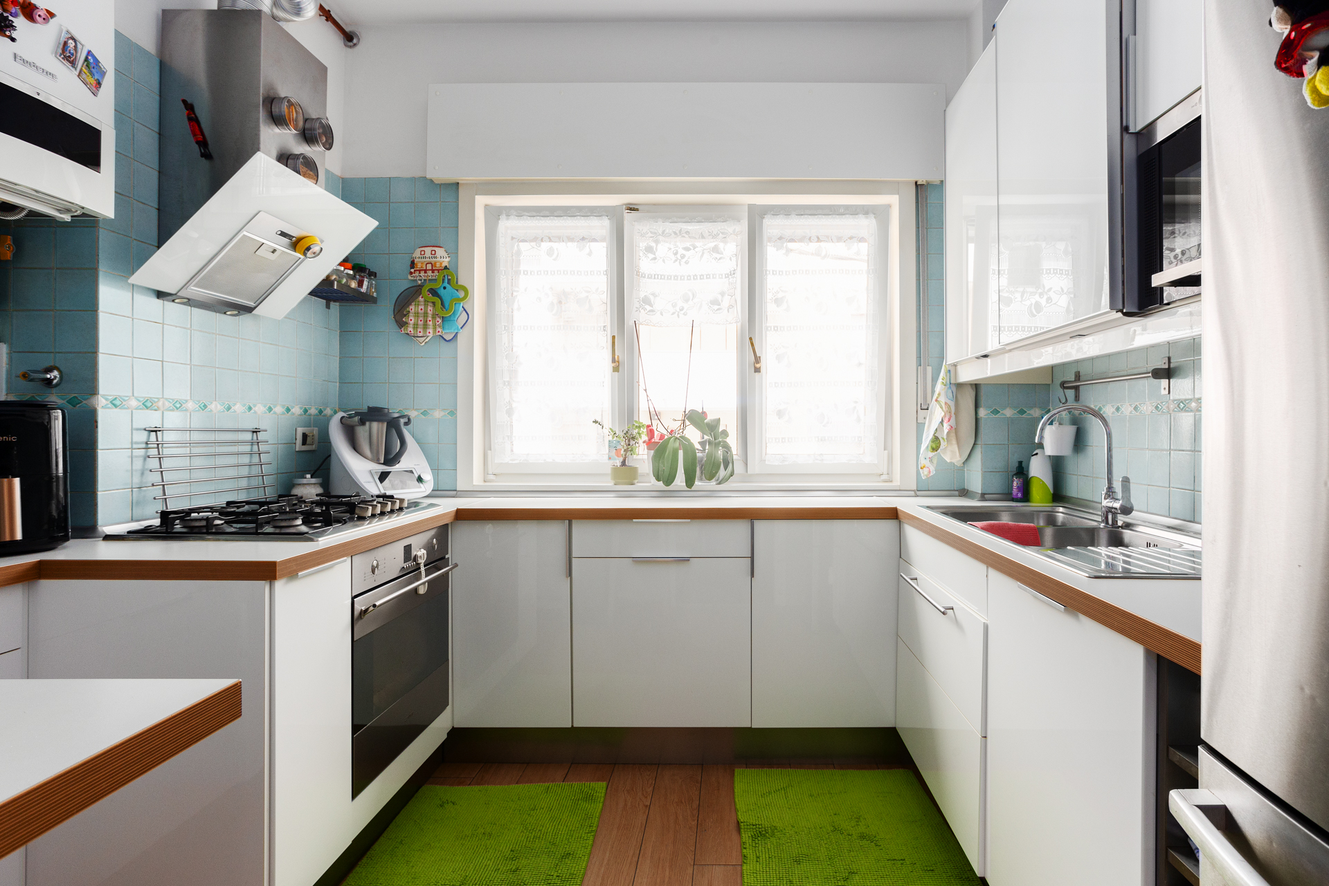 Il riscaldamento dell’alloggio di Vicolo Ospitale è autonomo, con caldaia a gas regolarmente manutenuta, il condizionatore in pompa di calore in multi split presente sia nelle camere che nel soggiorno, finestre con doppio serramento in alluminio con zanzariere (2011) , tende da sole nuove, entrambi di terrazzi sono stati oggetto di rifacimento.