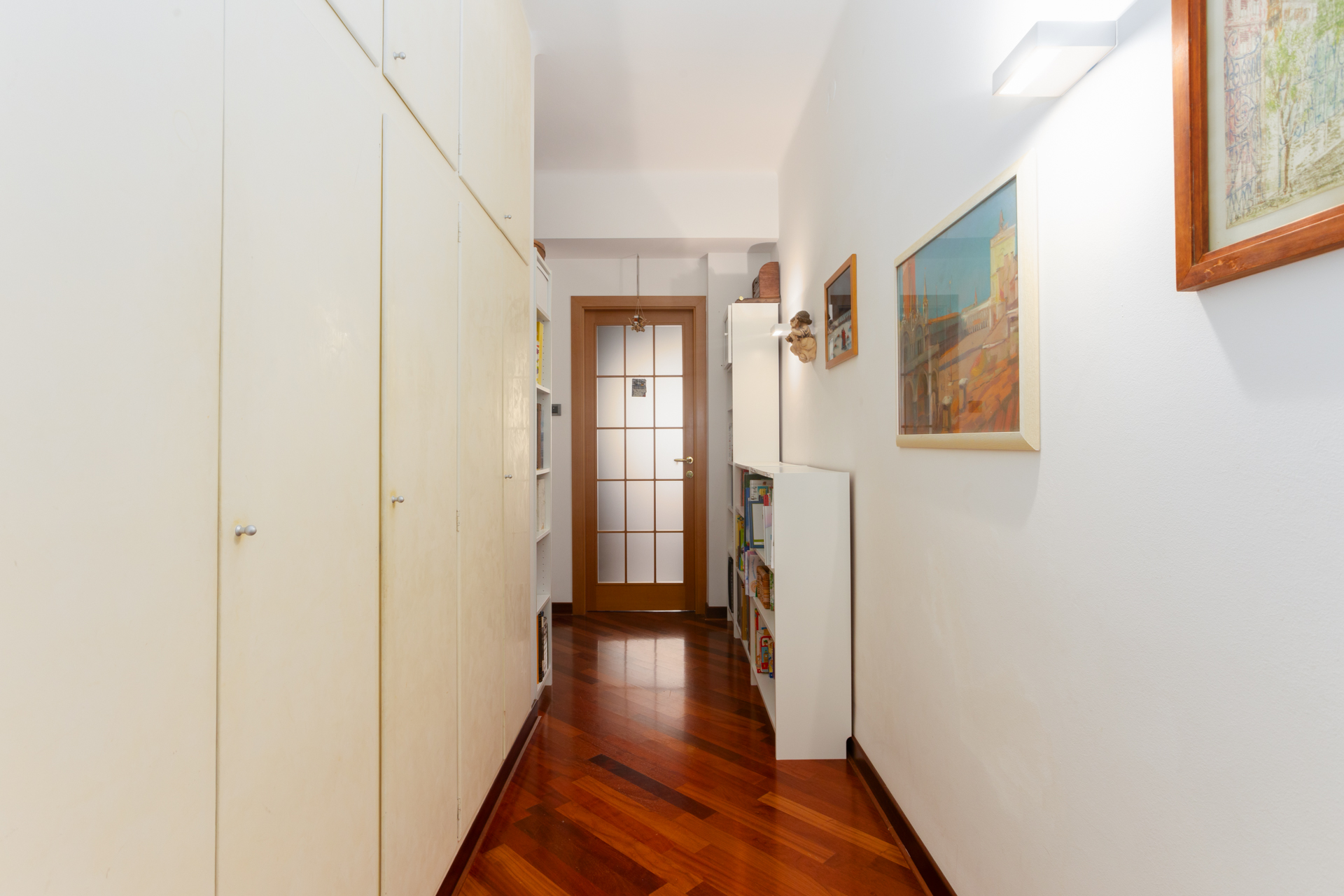 La zona notte: vi si accede attraverso un ampio corridoio con armadio a muro, troviamo due camere da letto matrimoniali, entrambe le stanze hanno accesso al terrazzo, provvisto di comode tende da sole, il bagno è stato completamente rifatto nel 2020 e si compone di un’ ampia doccia ed è completo di tutti i sanitari e w.c., con uno spazio separato per la lavatrice ed asciugatrice, al piano terreno troviamo la cantina esclusiva.